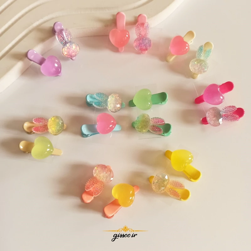 ناموجودگیره موی دخترانه رنگی طرح قلب و خرگوش جفتی