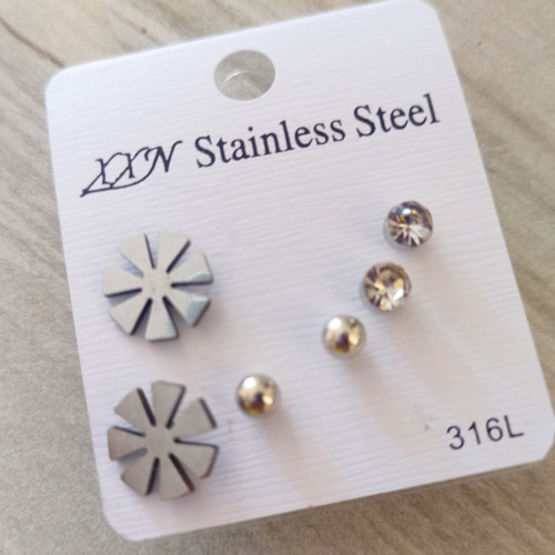 پک گوشواره دخترانه سه تایی استیل گل گوش میخی