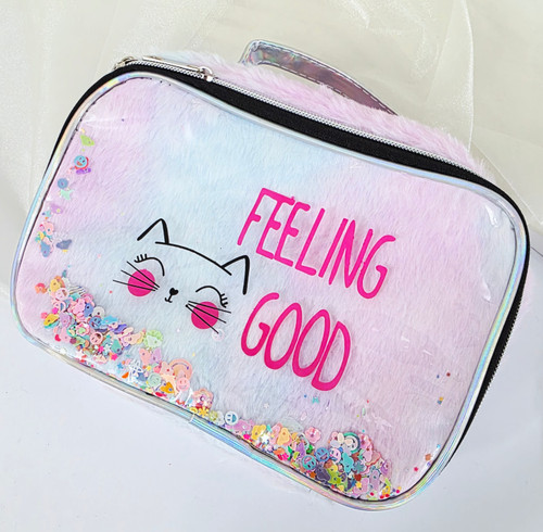 کیف آرایشی بزرگ طرح خز دار آکواریومی