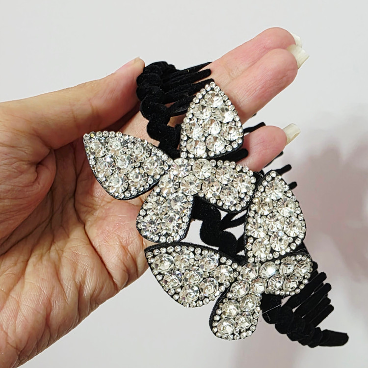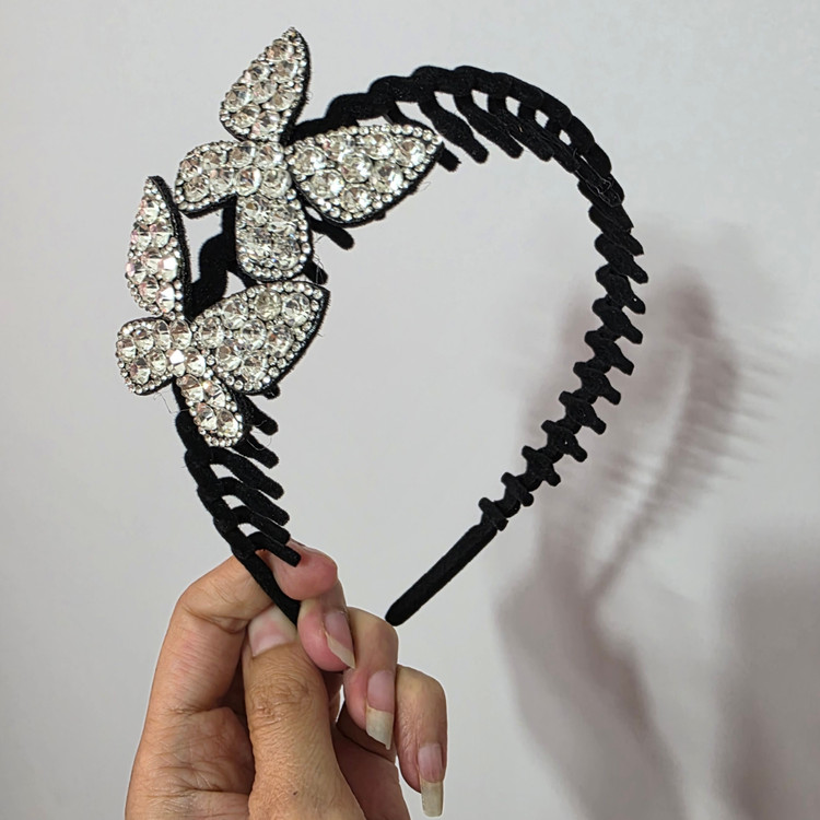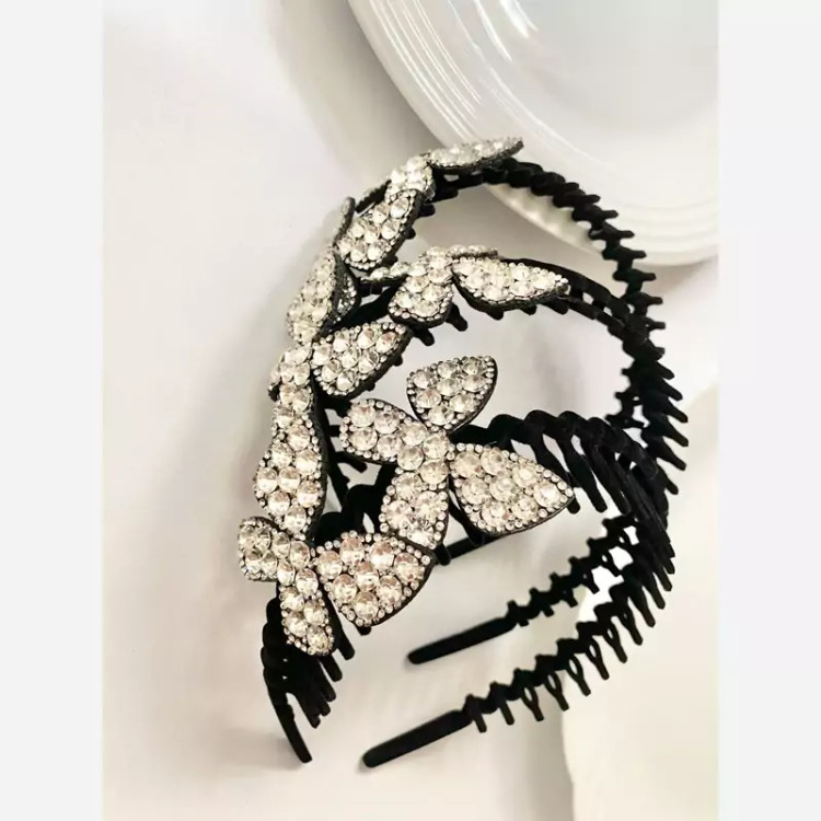 تل مجلسی طرح پروانه با کیفیت وارداتی رنگ نقره ای تمام نگین انعطاف پذیری خیلی بالا مناسب همه سنین مناسب روزانه و مهمانی شیک و بادوام بالای رنگ نگین ثابت بدون اذیت پشت گوش با هر اندازه ای از سر کودکان و بزرگسالان فیت میشه