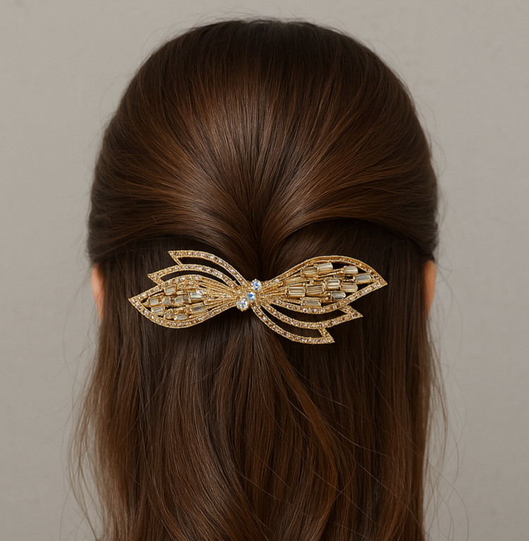 کلیپس فرانسوی برند زایا درجه 1 کیفیت اعلا مناسب حجم موی متوسط و کم موی پرحجم به شکل نیمه باز کلیپس 6 سانتی کلیپس با تزییات تقریبا ده سانته