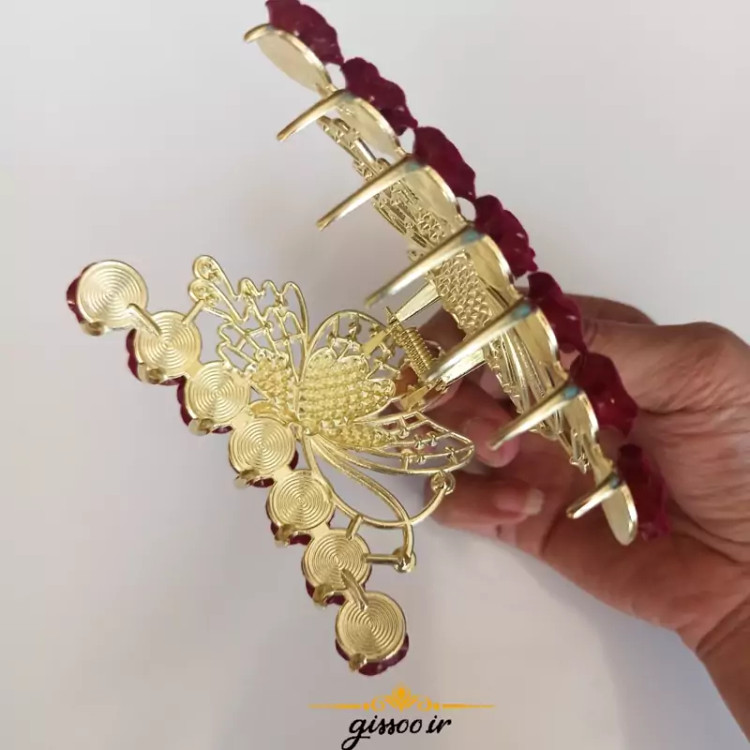 کلیپس فلزی خارجی اعلا و درجه 1 طرح پروانه نگینی با گل قرمز اعلا : بهترین کیفیت بازار وارداتی سایز بزرگ تقریبی ۱۲ سانتی آبکاری درجه 1 مخصوص موهای پر معمولی و بلند مدل های مختلف کلیپس مجلسی را در غرفه ببینید مجلسی درجه 1 ورق بزنید و طرح های زیباشو مشاهده بفرمایید
