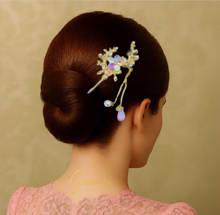 کانزاشی مو پروانه و گل صورتی آویزدار
