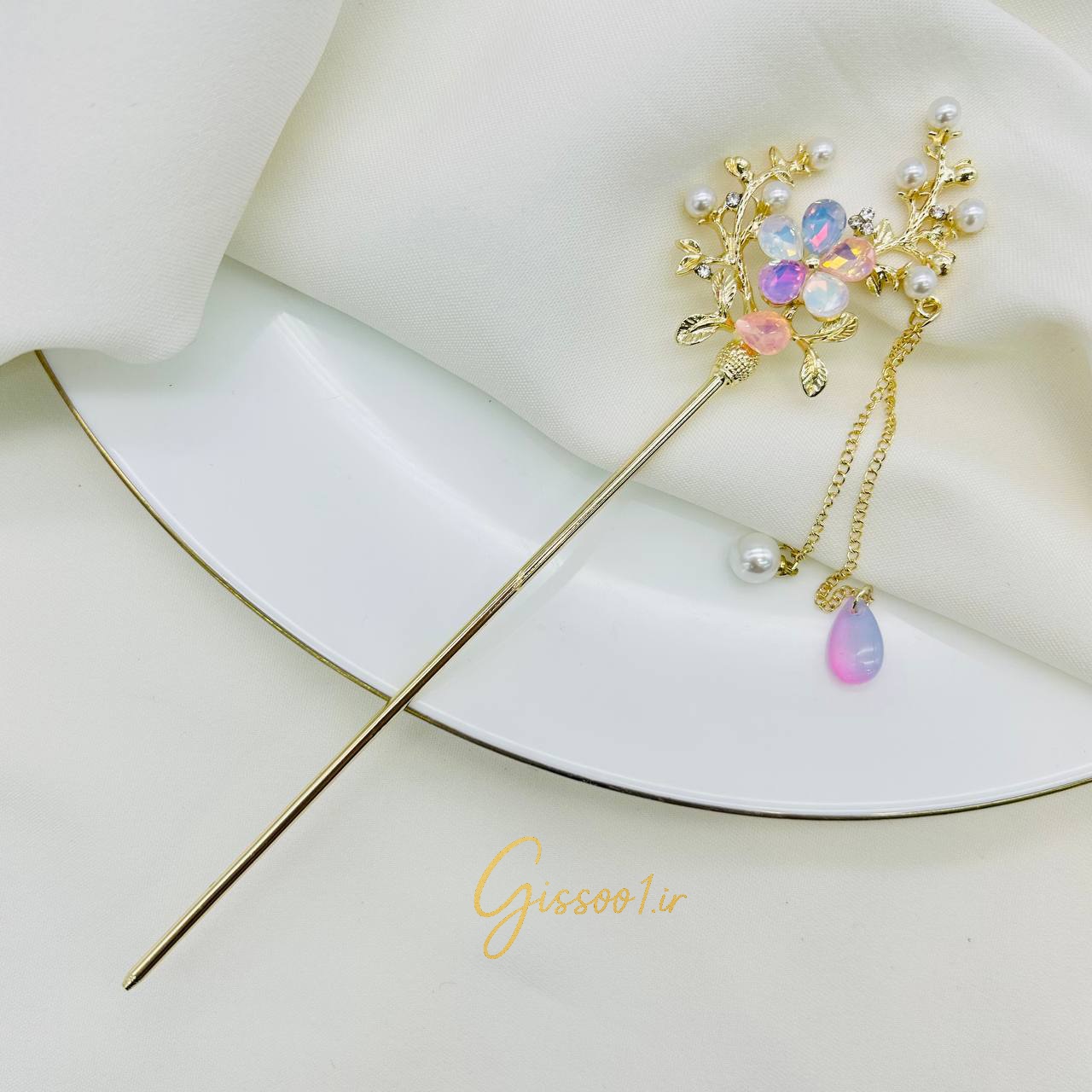 کانزاشی مو پروانه و گل صورتی آویزدار