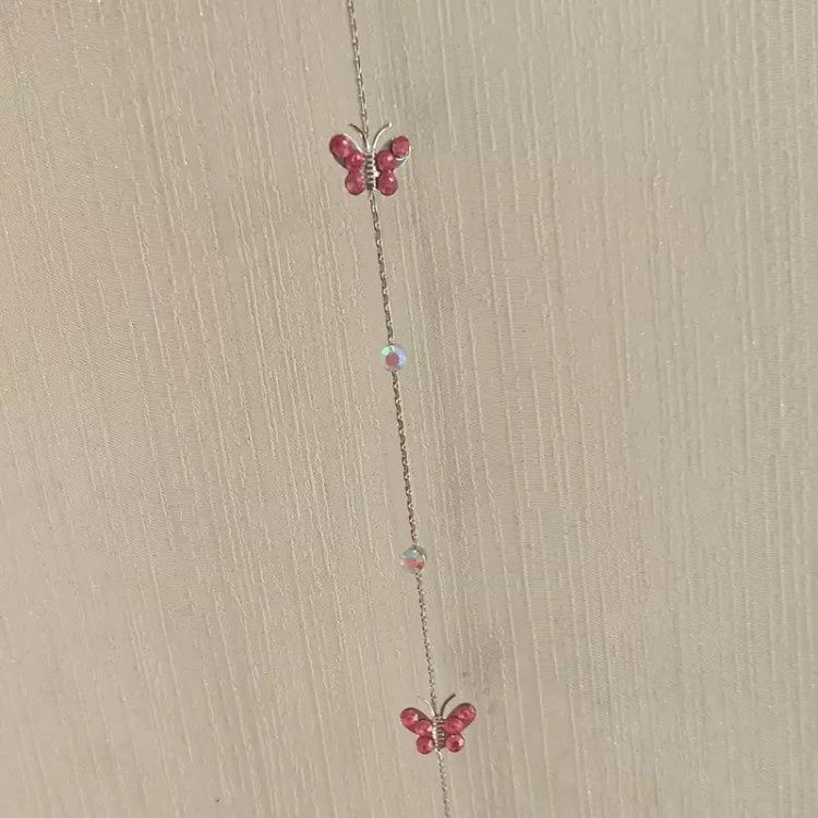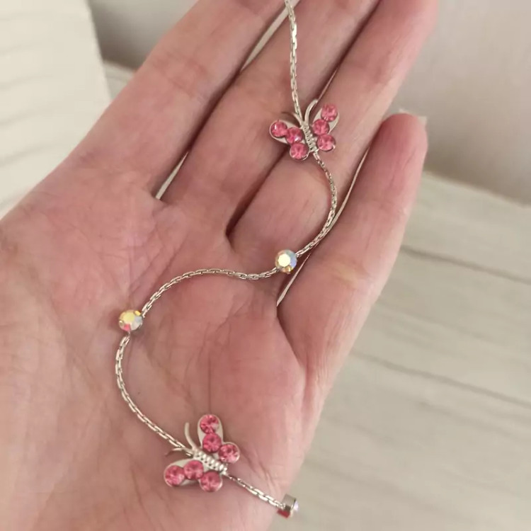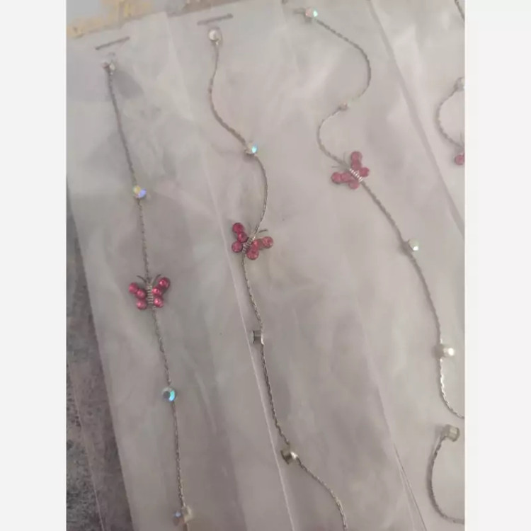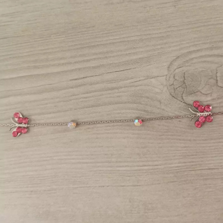 ریسه مو استیل پروانه صورتی و نگین درشت بدون تق تقی