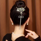 کلیپس گوجه ای موی زنانه طرح شکوفه و برگ سبز