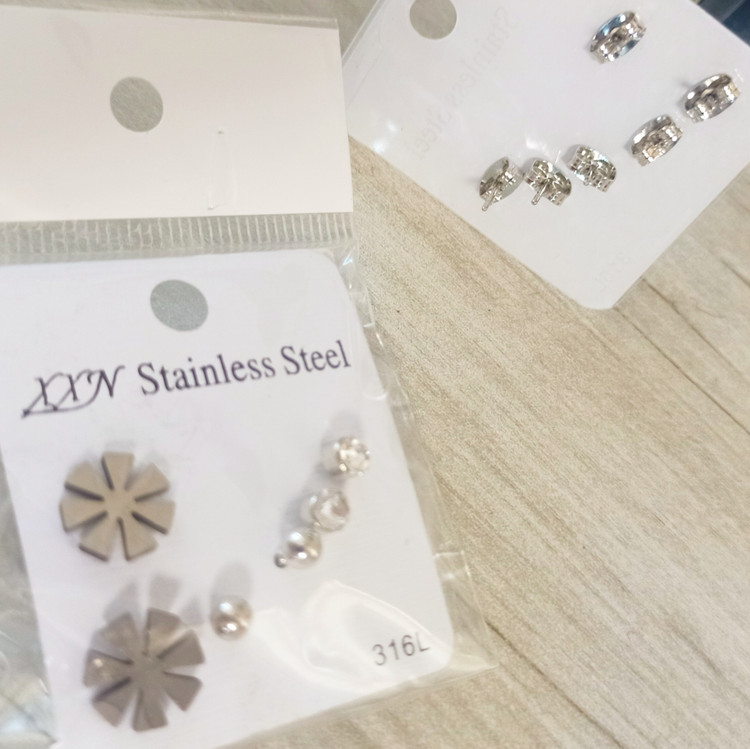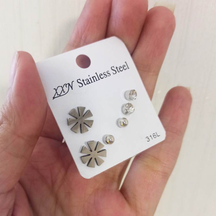 پک گوشواره دخترانه سه تایی استیل گل گوش میخی