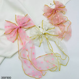 گیره مو دخترانه پاپیونی مجلسی توری حریر دنباله دار