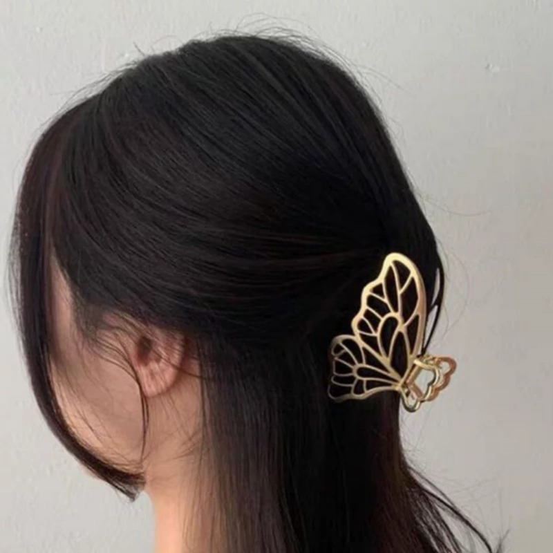 کلیپس فلزی پروانه طلایی اندازه متوسط کیفیت خوب وارداتی برای موی متوسط موی حجم دار به شکل نیمه باز