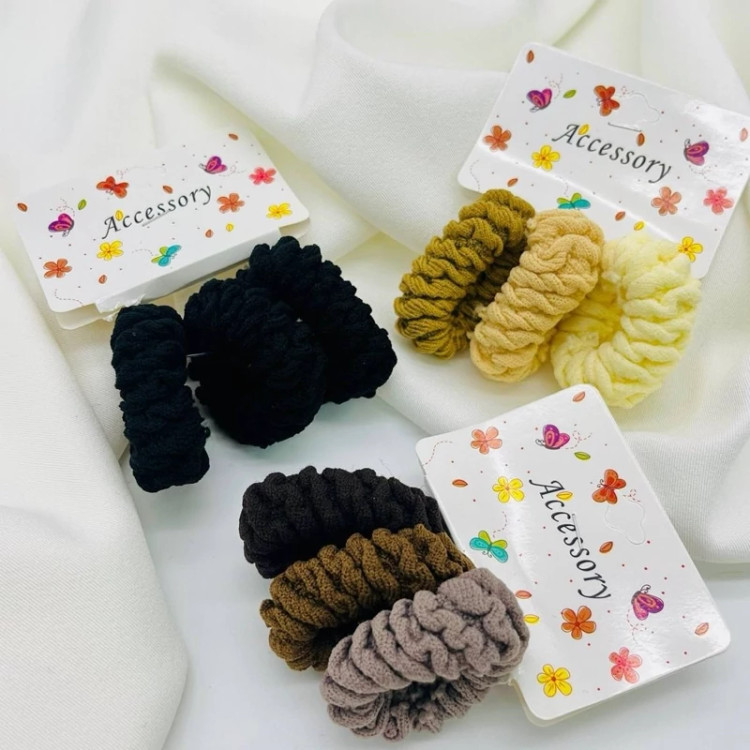 کش مو حوله ای پفکی رنگ و کرم قهوه ای