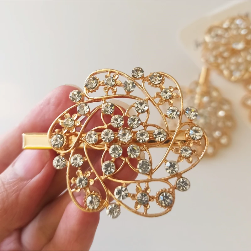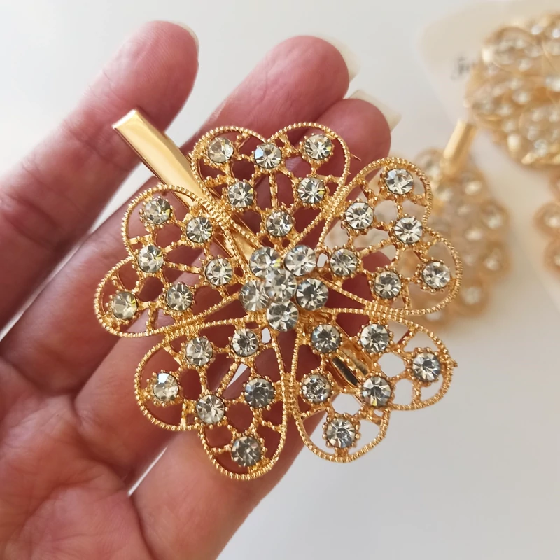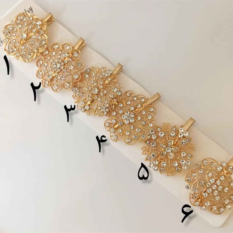 گیره موی طلایی تمام نگین پرکار پر زرق و برق اندازه بزرگ گیره پشت کار گیره انبری کیفیت آبکاری عالی