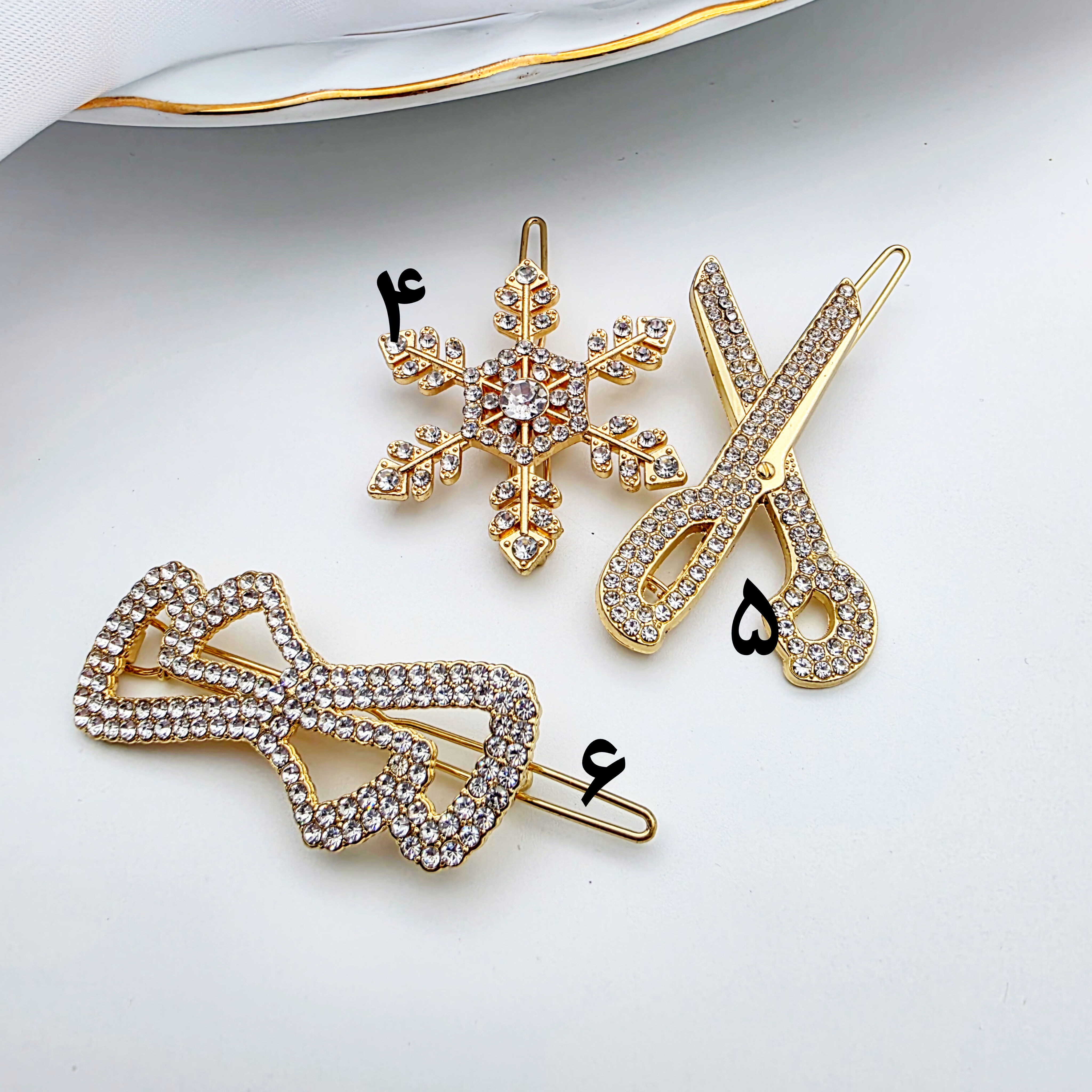 گیره موهای مجلسی نگین دار برای زیبایی بیشتر موهای خانم ها شماره ۱تا ۳ گیره های انبری هستن شماره ۴ تا ۶ گیره های چفتی هستن