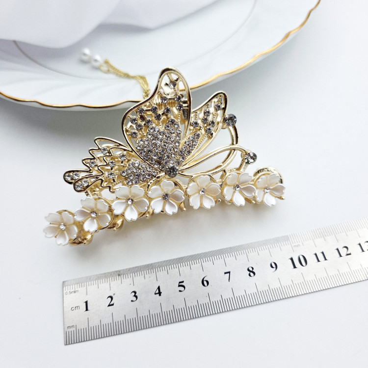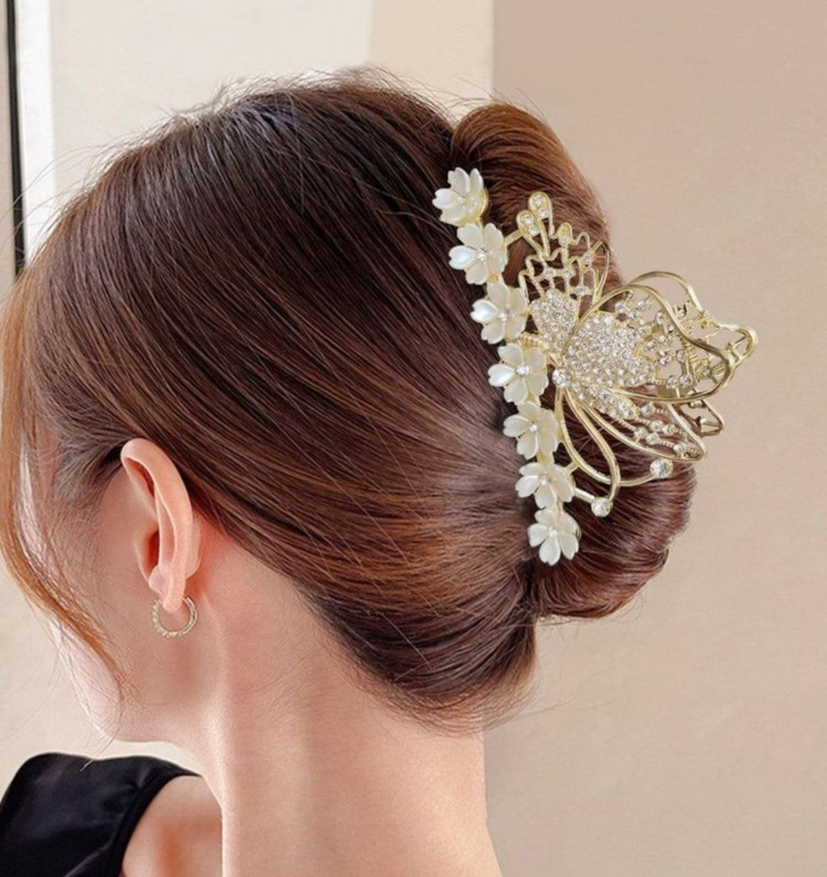 کلیپس مو زنانه پروانه و شکوفه سفید آویزدار