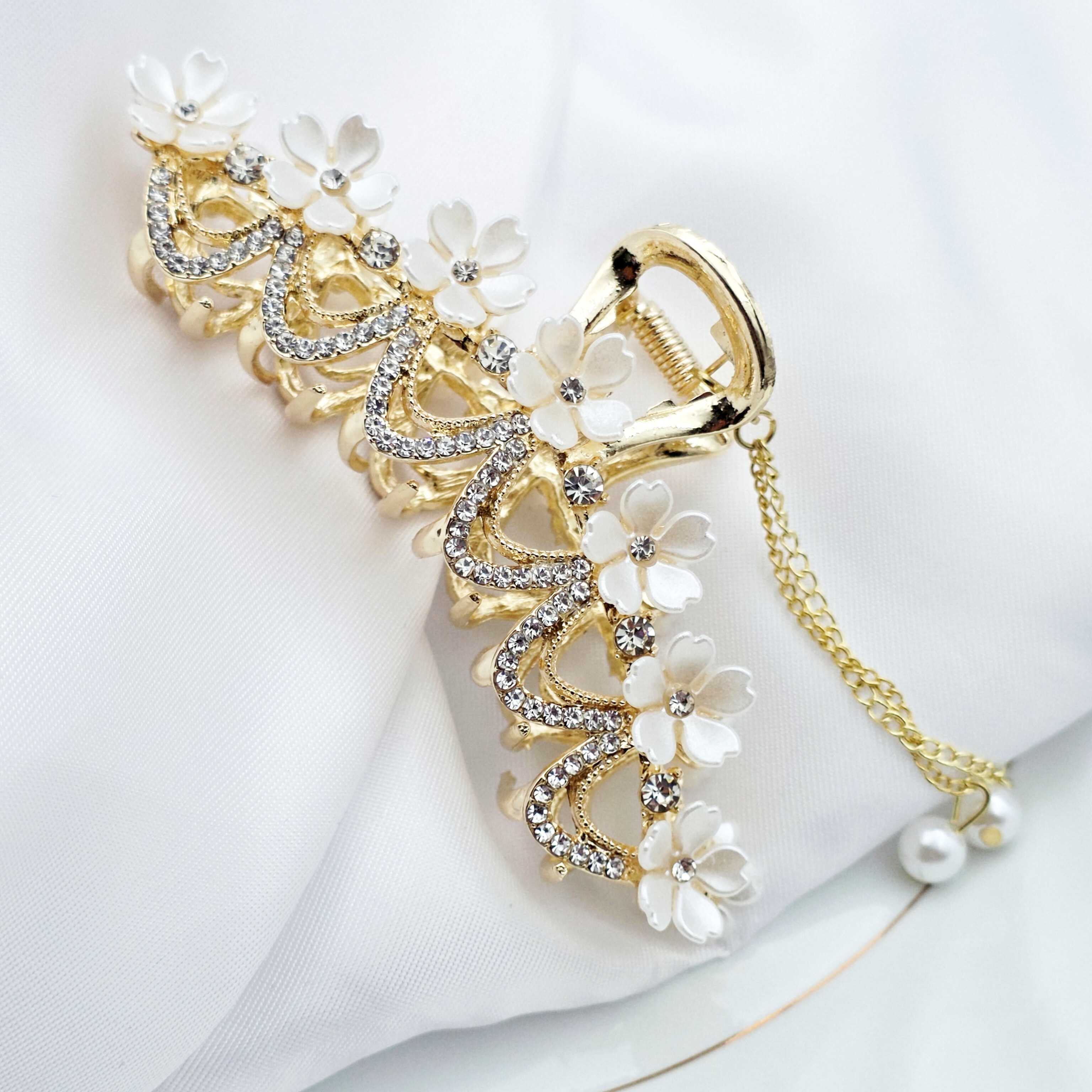 کلیپس بزرگ مجلسی اویزدار فلزی با آبکاری درجه یک مناسب موهای معمولی و تا حدی حجم دار در مهمانی و دورهمی